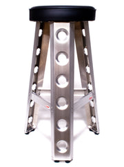 High-quality aluminum race stools handcrafted in our shop. Great for the garage and racetrack. With the three-leg design and rubber feet they have great stability on uneven ground.