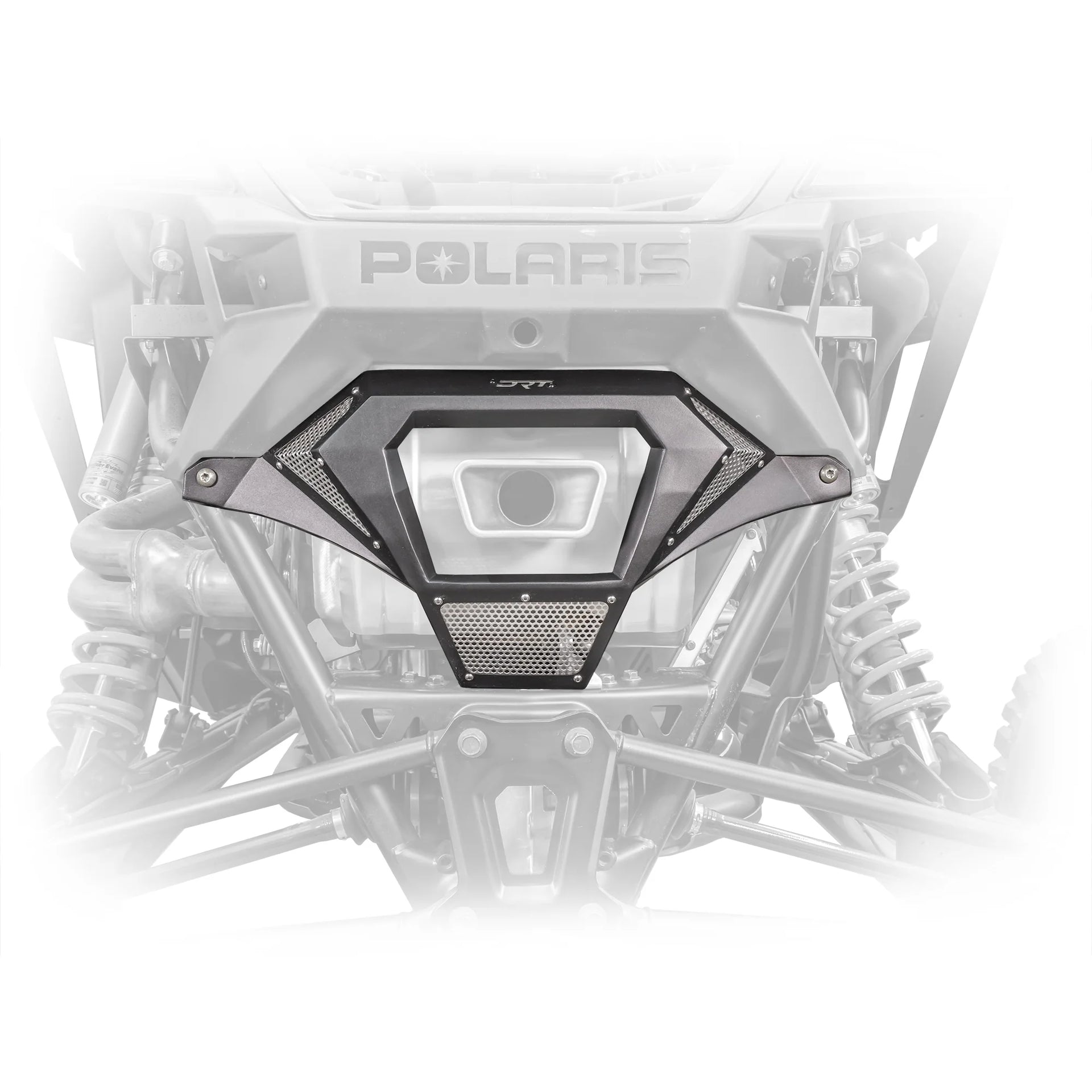 The DRT Motorsports Polaris Pro R 2022+ Aluminum Exhaust Cover is a great upgrade for aggressive styling, more clearance, and better cooling for your Pro R. The DRT Pro R Aluminum Exhaust Cover replaces your factory plastic exhaust cover with a vented aluminum cover that fits close to the body and retains the center exit exhaust found only on the Pro R platform. The DRT Pro R Aluminum Exhaust Cover is laser cut, formed, welded, and powder coated in the DRT sand texture black.