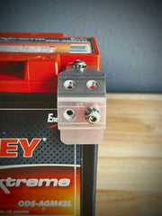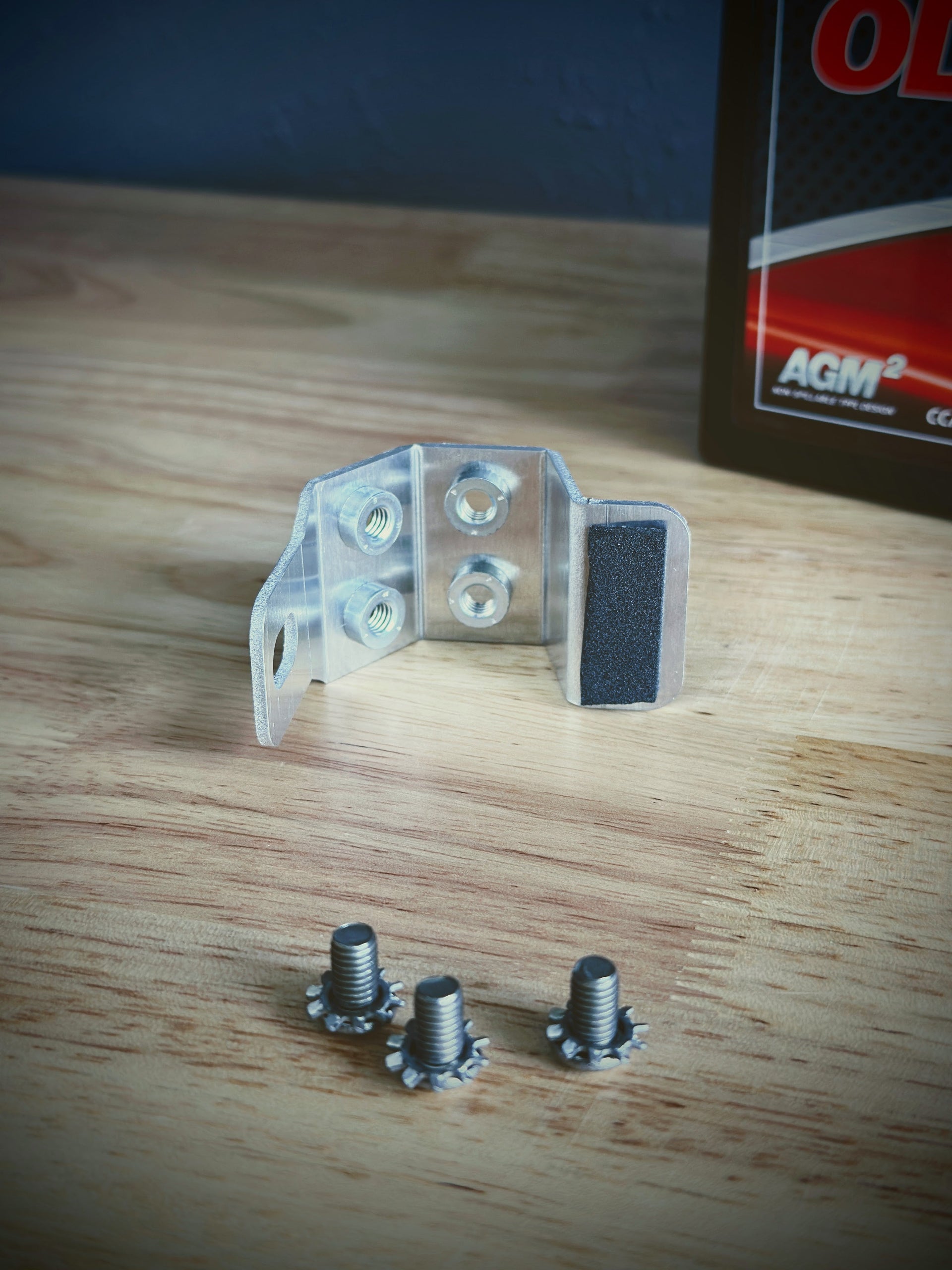 Check out these small creature organization mounts for your battery terminals. No need to bundle the cables into one bolt. Keep your main cable clean and free, while still being able to mount 4 more cables nice and clean. Fitted with 4 extra M6 threaded inserts. These are universal and will work with any threaded battery terminal. Made from 14g Aluminum to keep your cables grounded. Mounts ship with standard 5 M6 bolts and 5 tooth washers.