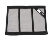 The net measures 18″ H x 24″ W and has slots on the top and bottom for a spring rod to be pushed through. Use our Window Net Spring Rod Mounting Kit to weld on tabs to your vehicle, and install the spring loaded rod through the slot in the net, and then into to tabs on the vehicle. The bottom rod is usually bolted or hard mounted to the vehicle frame or door.