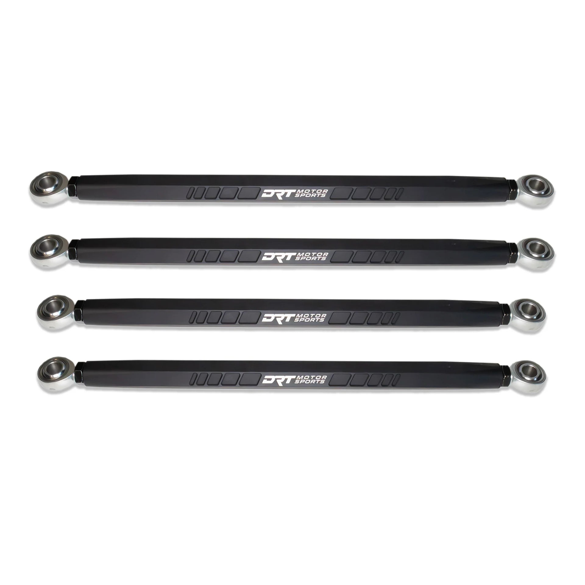 DRT Motorsports Polaris XP1K/4/Turbo 64” (2014-2023) Hex Bar Radius Rod Kit (Master Kit-M10/M12) is designed to reduce weight, increase strength, and add adjustability to your radius rods in a stylish package.  These rods are manufactured in the USA on state-of-the-art CNC equipment of aerospace grade 6061 aluminum.  All rods are fully adjustable with left / right hand rod ends at each end for quick camber/adjustability. The DRT Motorsports Polaris XP1K/4/Turbo 64” (2014-2023) Hex Bar Radius Rod Kit (Master Kit-M10/M12) includes 2 sets of hardware M10 for early release vehicles and M12 for later released and Turbo vehicles.  The M12 spacer can be used on M10 vehicles on the chassis side to upgrade the frame radius rod bolts for additional strength; drilling and purchase of new hardware will be required.
