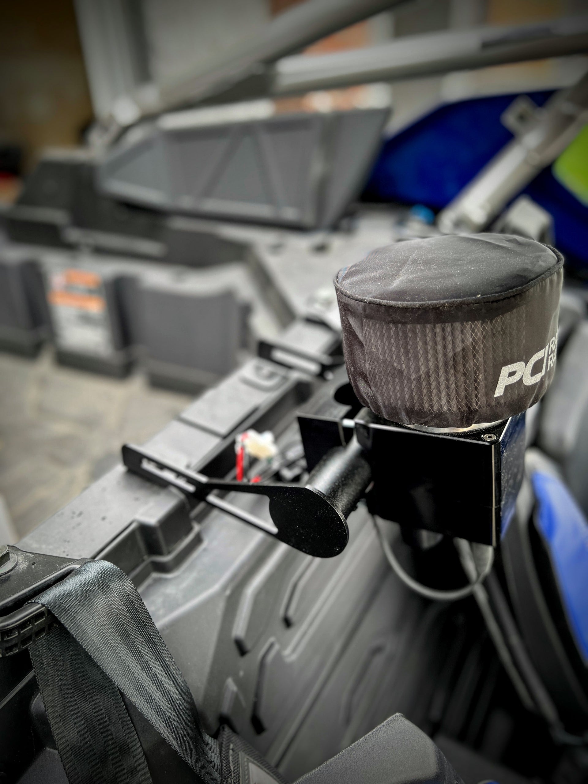 StayFlush Bar mount will mount whatever you need or you PCI pumper perfectly. Bar is 1.50 inches in diameter. Mount to your factory bolts in between the seats on a 2 seater or your 4 seater. Powder with the same texture coating as all other Stayflush products.