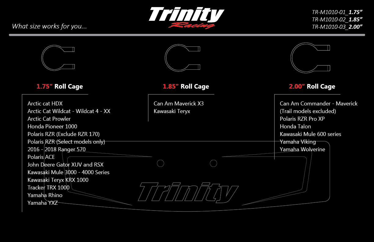 Not all mirrors are created equal! That’s why Trinity Racing designed the APEX rear view mirror to be the best looking and functioning mirror in the industry. Sure it looks great - but it is also strong and functional. The poly body is extremely durable and can handle the abuse your UTV takes on a daily basis. Trinity’s design team spent countless hours creating a unique clamp that guarantees your mirror is not going to move around on you, but at the same time is adjustable. Plus, install and removal is a breeze! Simply slide the clamp over the roll cage and install the two socket cap hex head bolts, find your preferred position and snug them down. Enough reading - mount this puppy up and go for a drive!